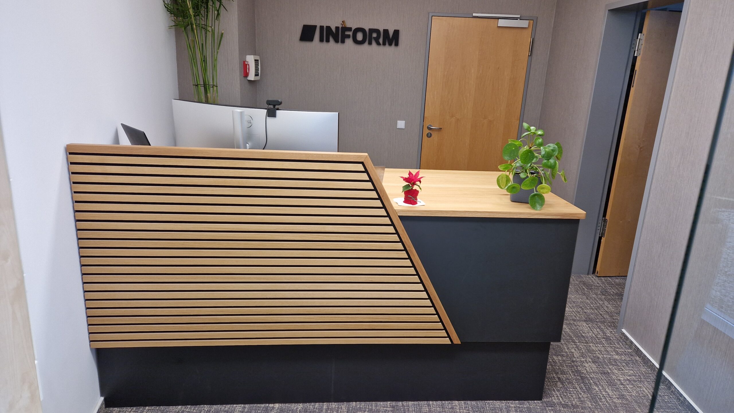 Der Empfangsbereich ist Ihre Visitenkarte. Als Tischlerei in Aachen fertigen wir hochwertige Einrichtungen für Hotels, Banken und öffentliche Gebäude. Referenzen: Sparkasse Aachen, RWTH, Domicil Hotel.