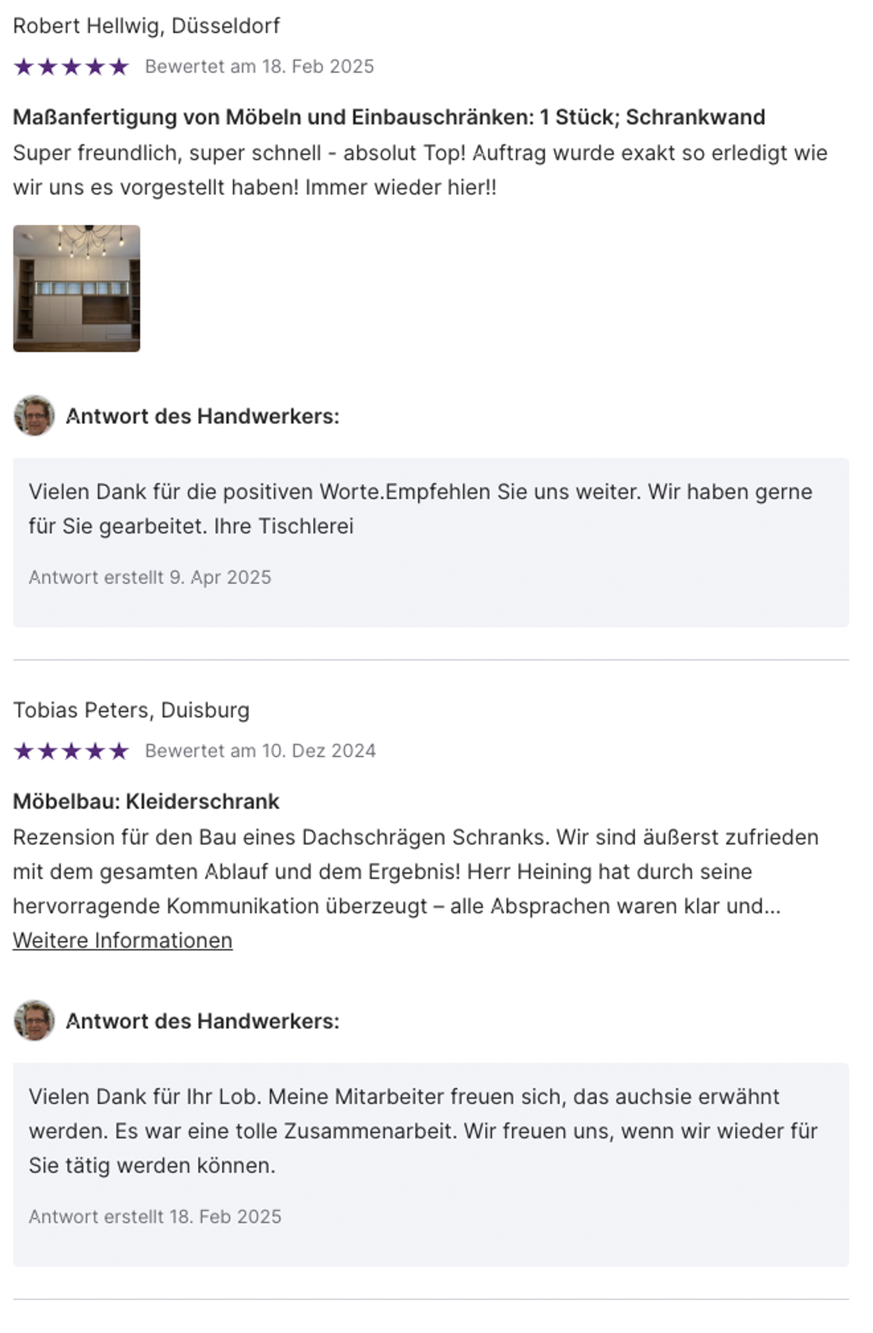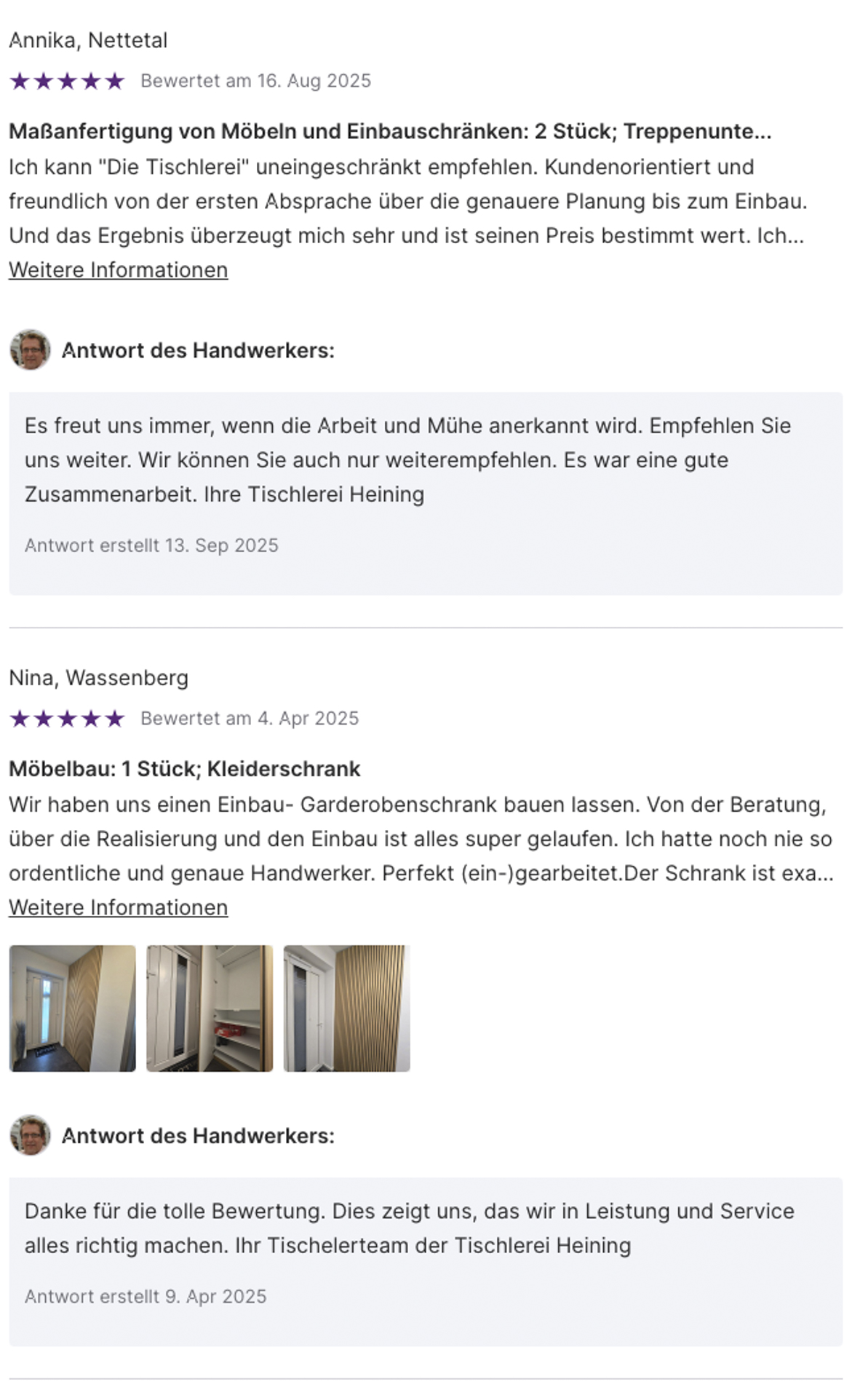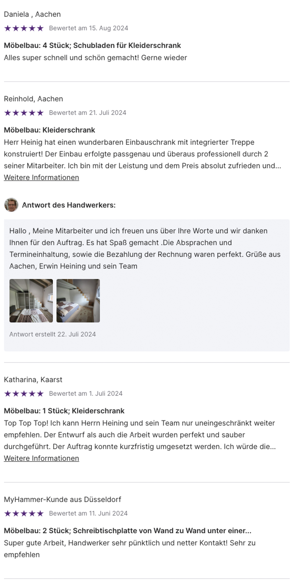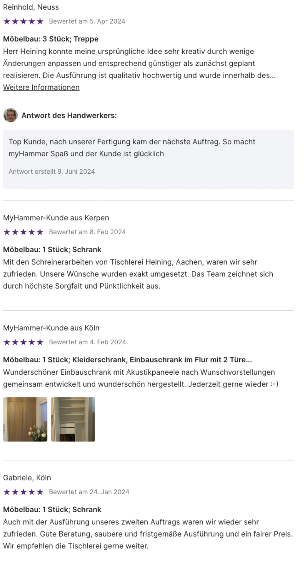 Welche Erfahrungen haben Kunden mit der Tischlerei Heining in Aachen gemacht?