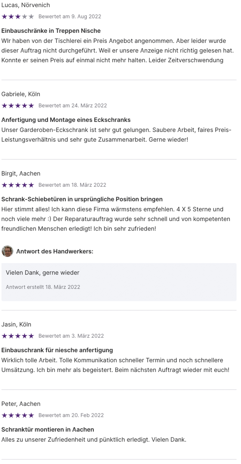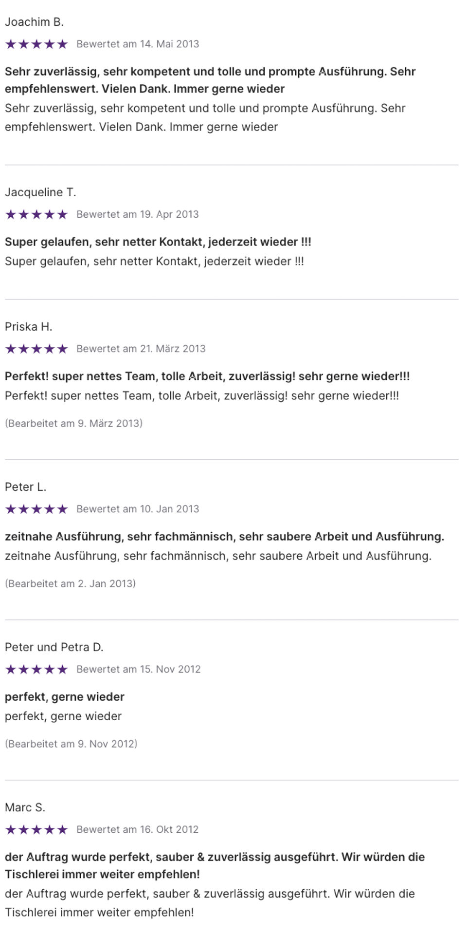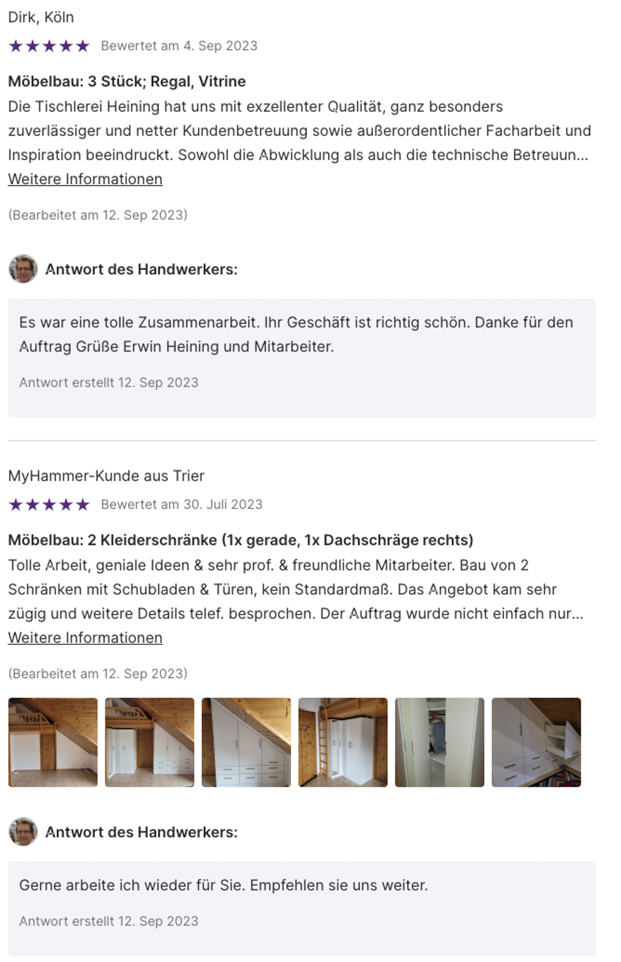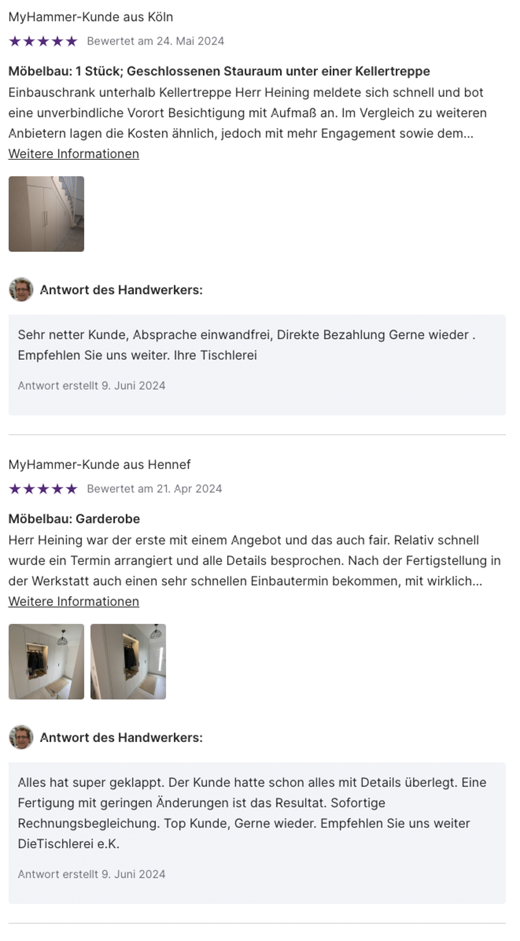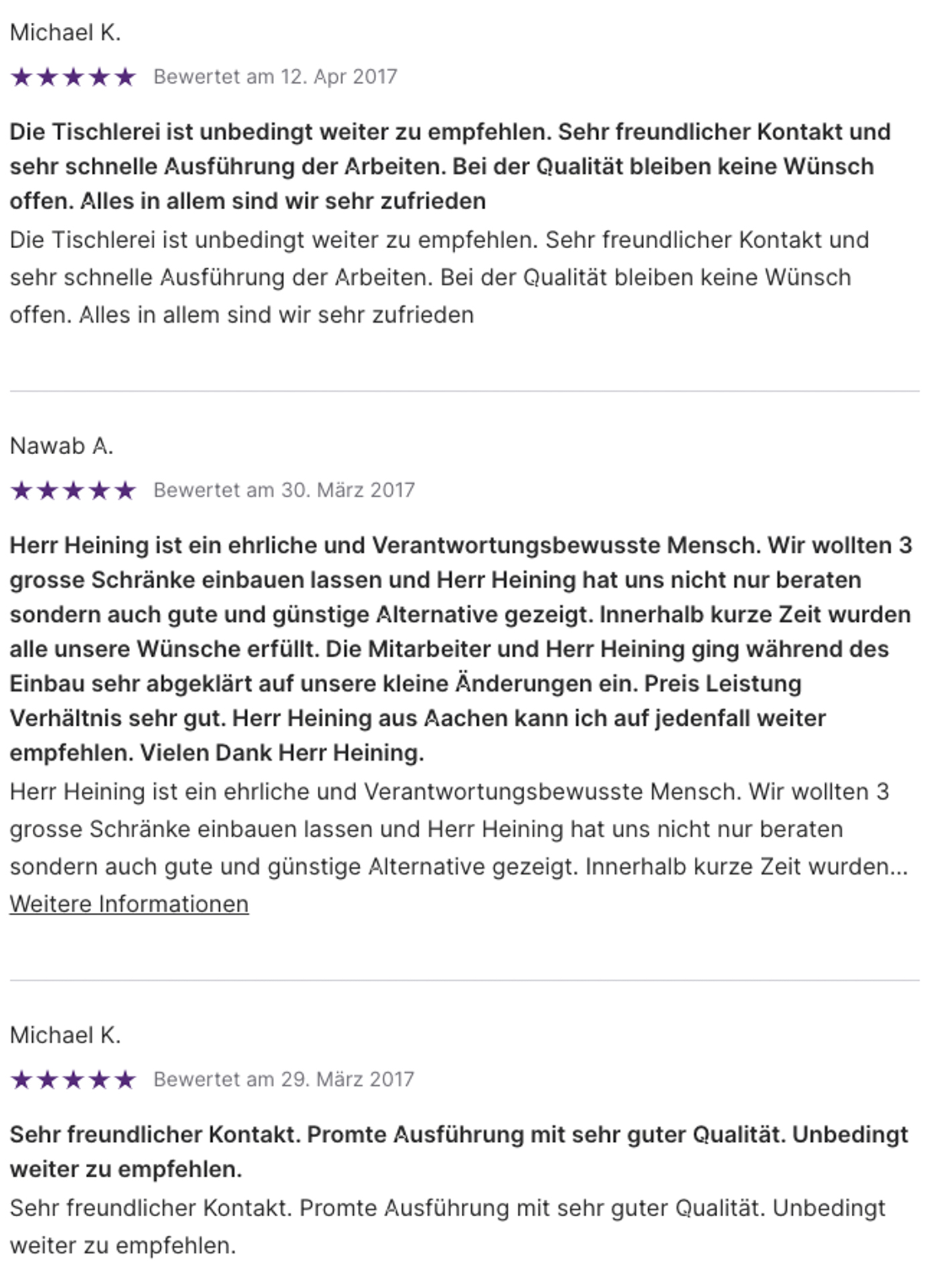 Welche Erfahrungen haben Kunden mit der Tischlerei Heining in Aachen gemacht?