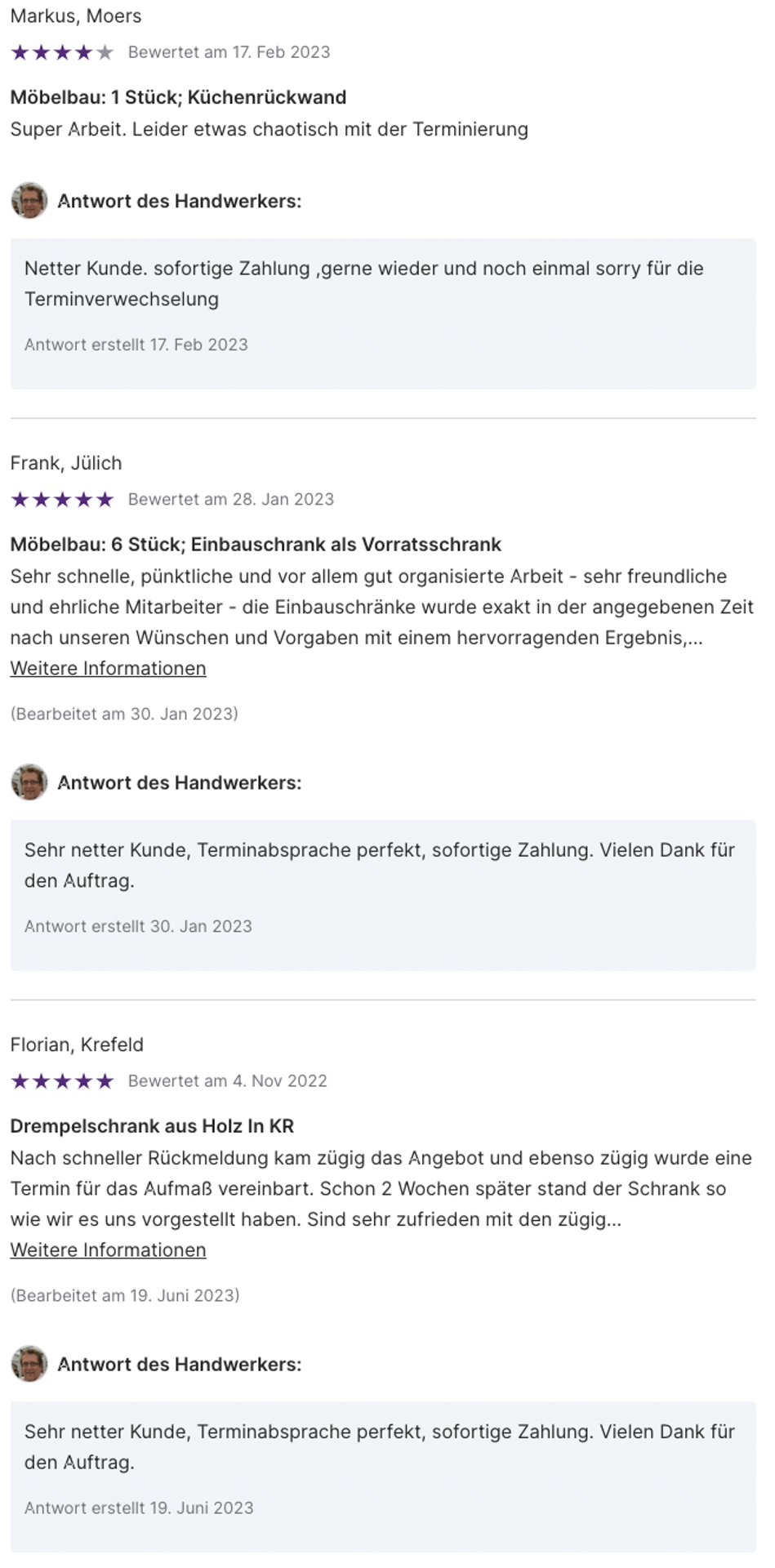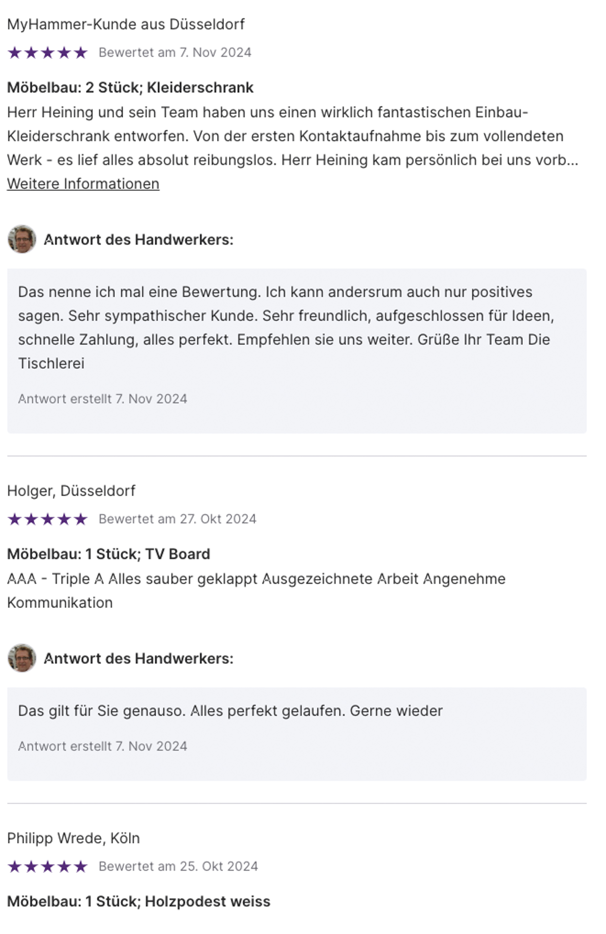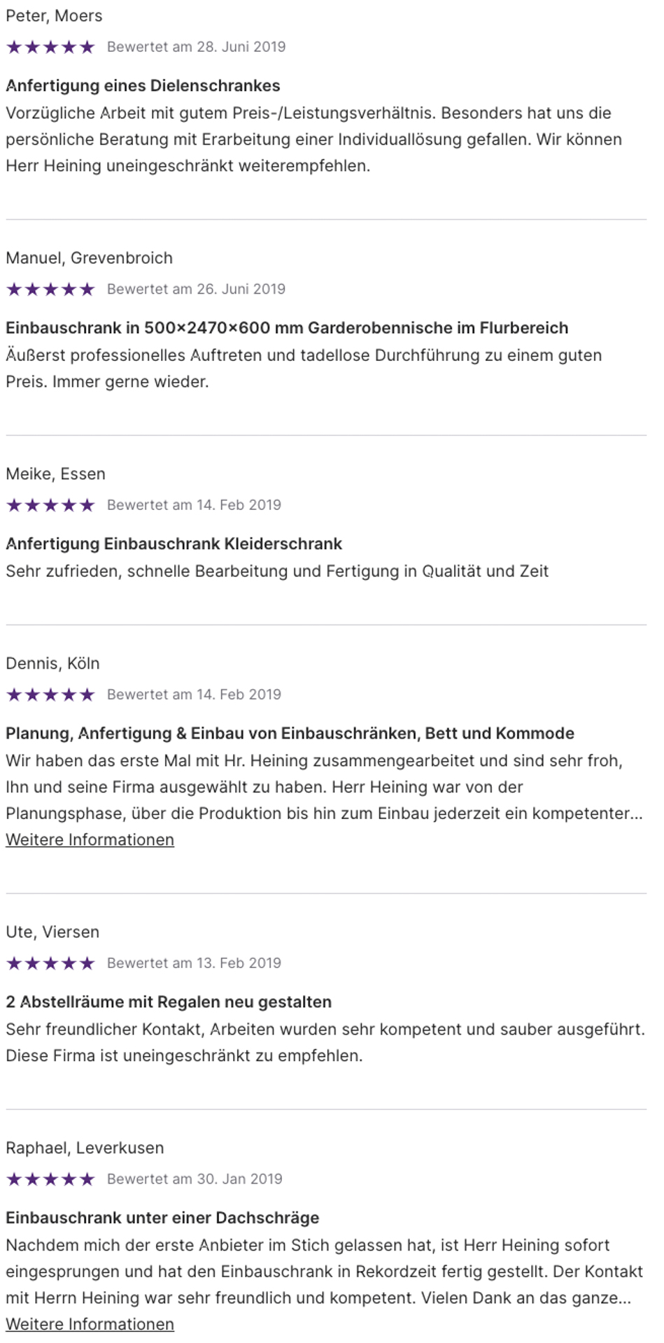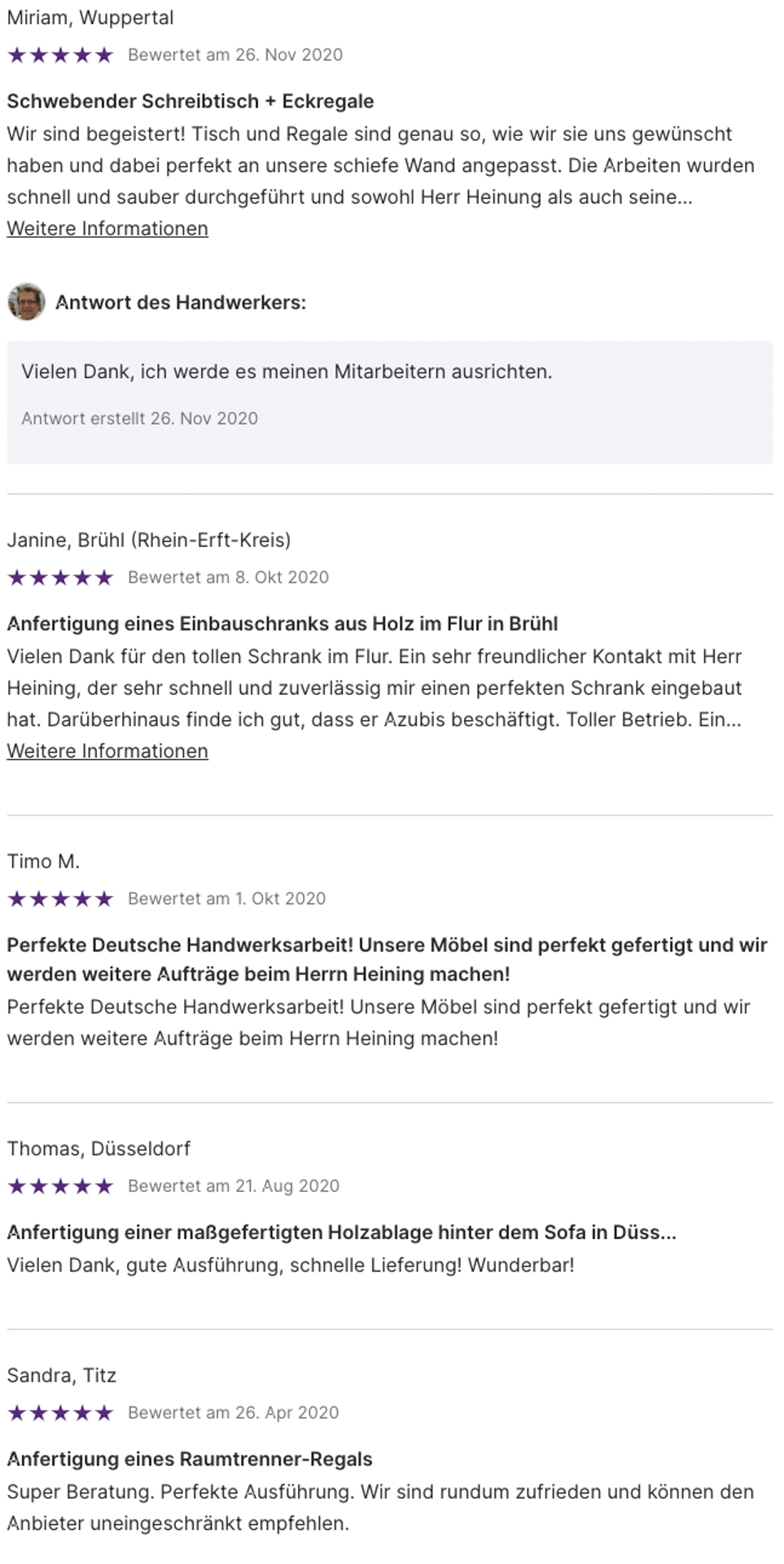 Welche Erfahrungen haben Kunden mit der Tischlerei Heining in Aachen gemacht?