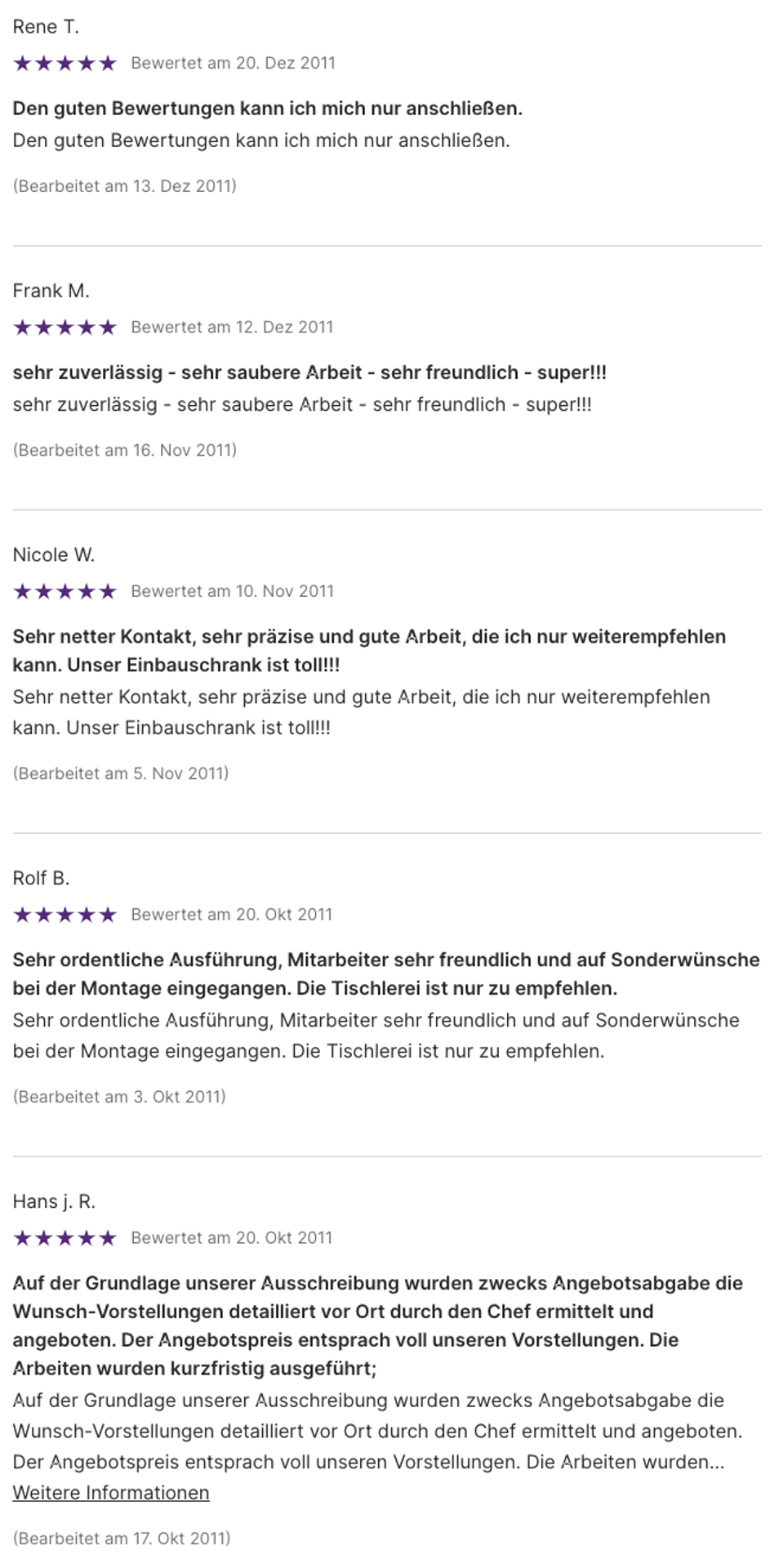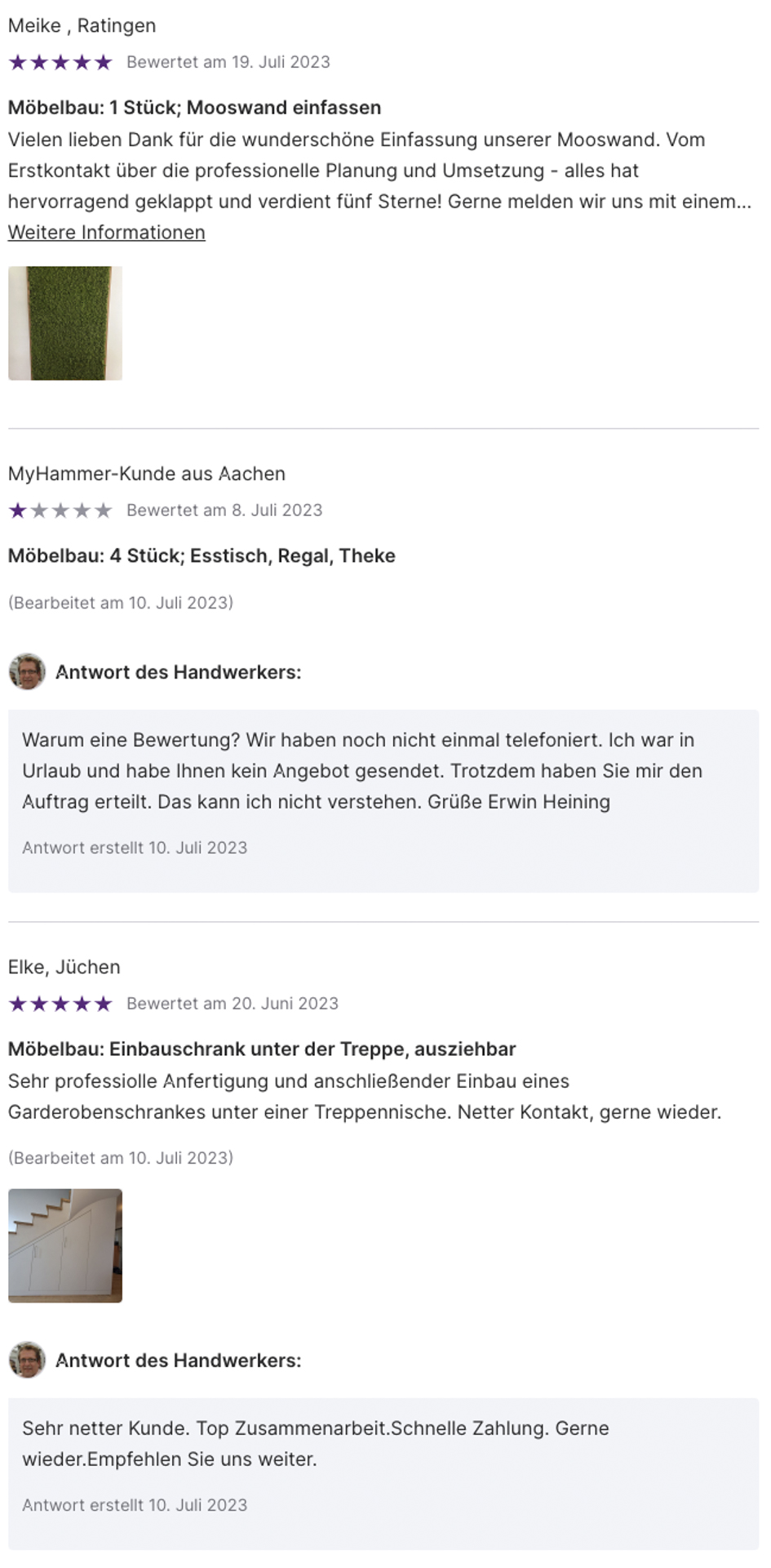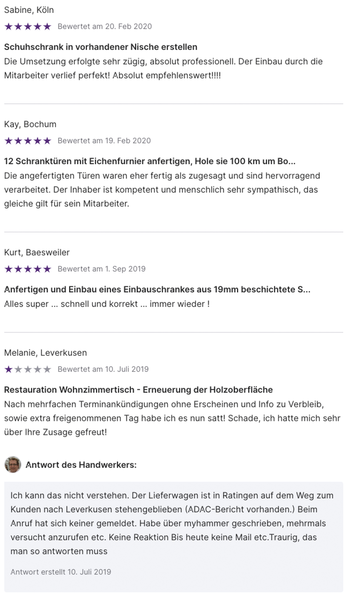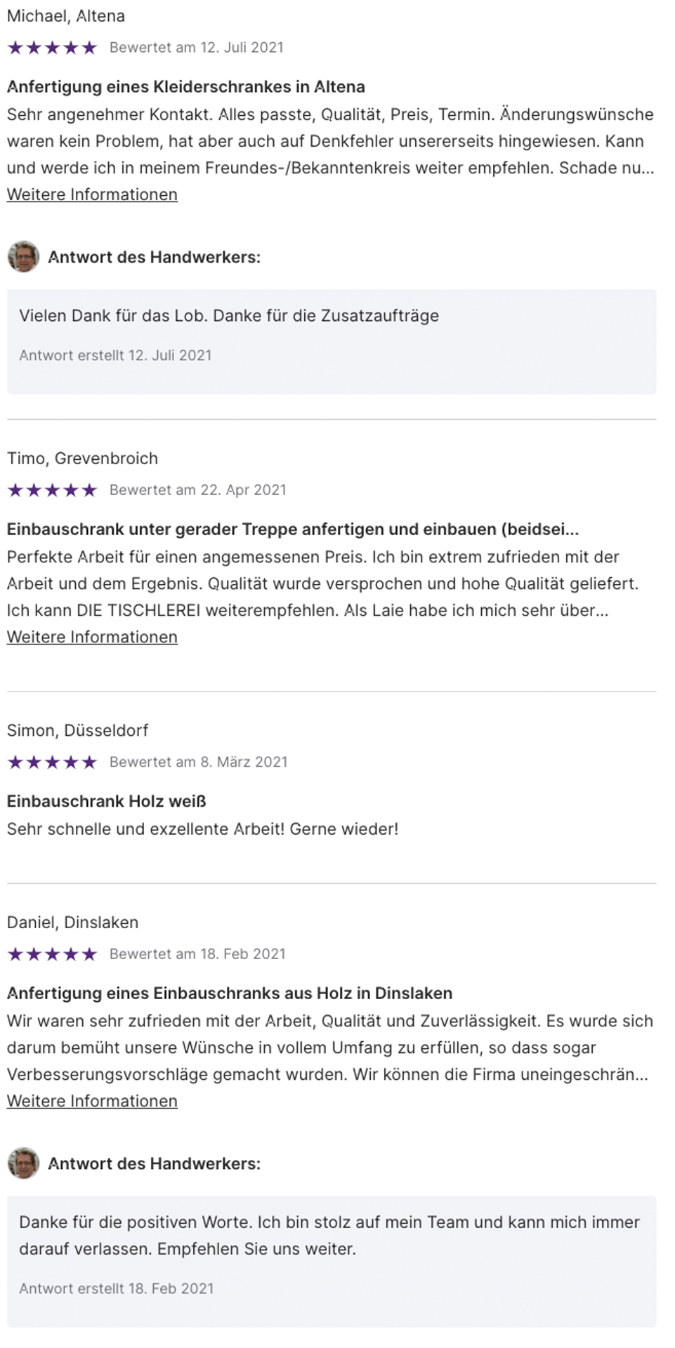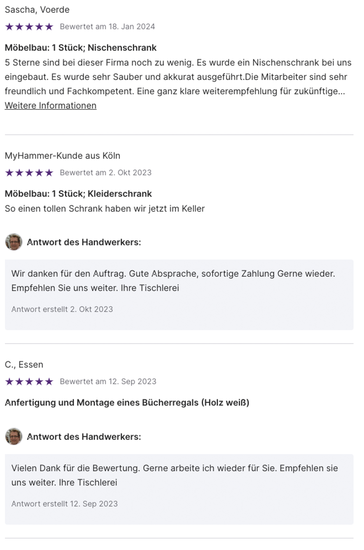 Welche Erfahrungen haben Kunden mit der Tischlerei Heining in Aachen gemacht?